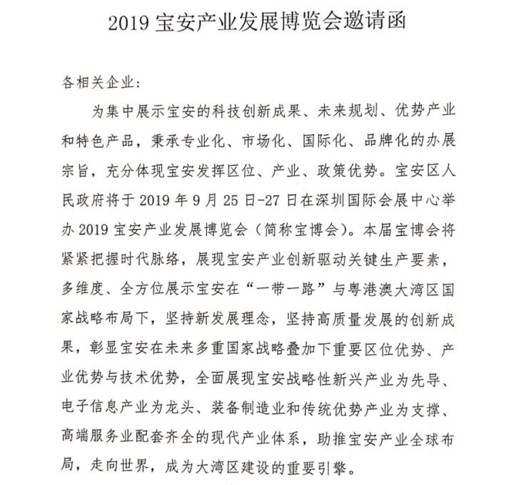 五、报名方式:填写《2019宝安产业发展博览会报名表》即可申请参与。
