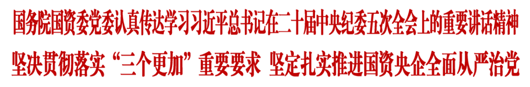 会议认为,二十届中央纪委五次全会是党中央在“十五五”开局之年部署推进全面从严治党的一次重要会议。习近平总书记发表的重要讲话,站位高远、视野宏阔、思想深邃、内涵丰富,充分肯定过去一年全面从严治党取得的显著成效,强调要以更高标准、更实举措推进全面从严治党,提出“三个更加”重要要求,体现了以习近平同志为核心的党中央纵深推进全面从严治党的深远考量、坚定意志和必胜信心,为深入推进全面从严治党和反腐败斗争提供了根本遵循。要深入学习贯彻习近平总书记重要讲话精神,深刻领悟党中央推进全面从严治党取得的战略成果,更加坚定推进国资央企党风廉政建设和反腐败斗争的信心决心,以全面从严治党新成效引领保障国资央企更好履行新征程的职责使命。