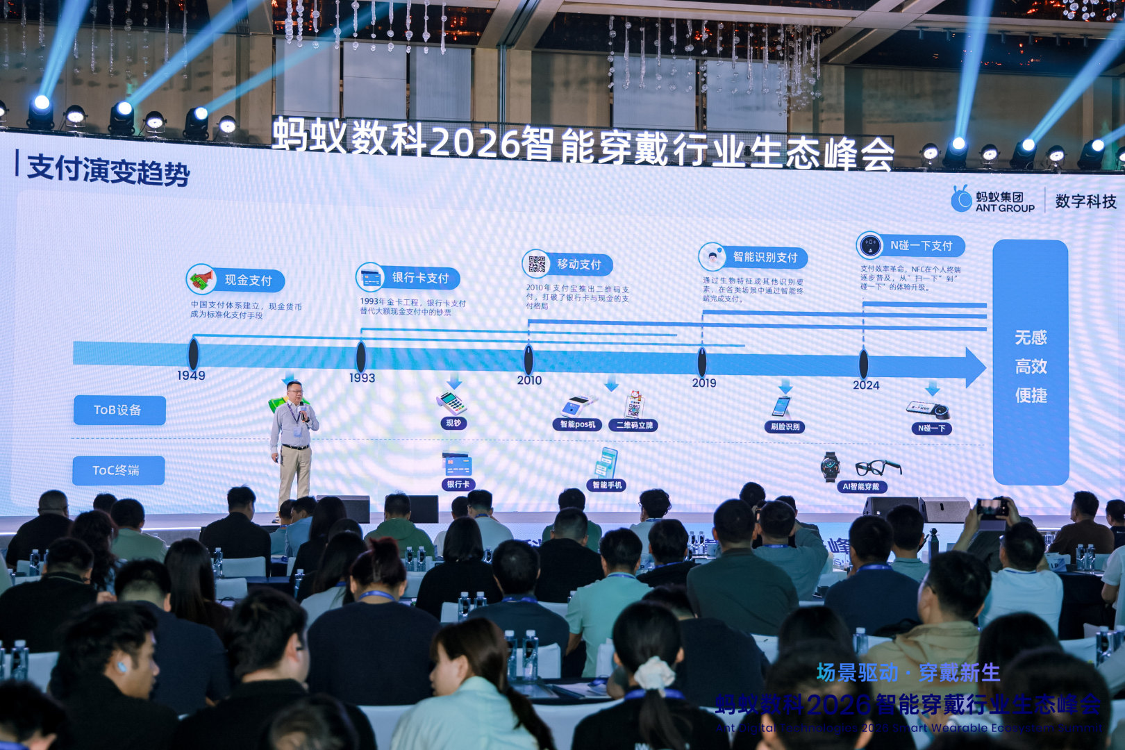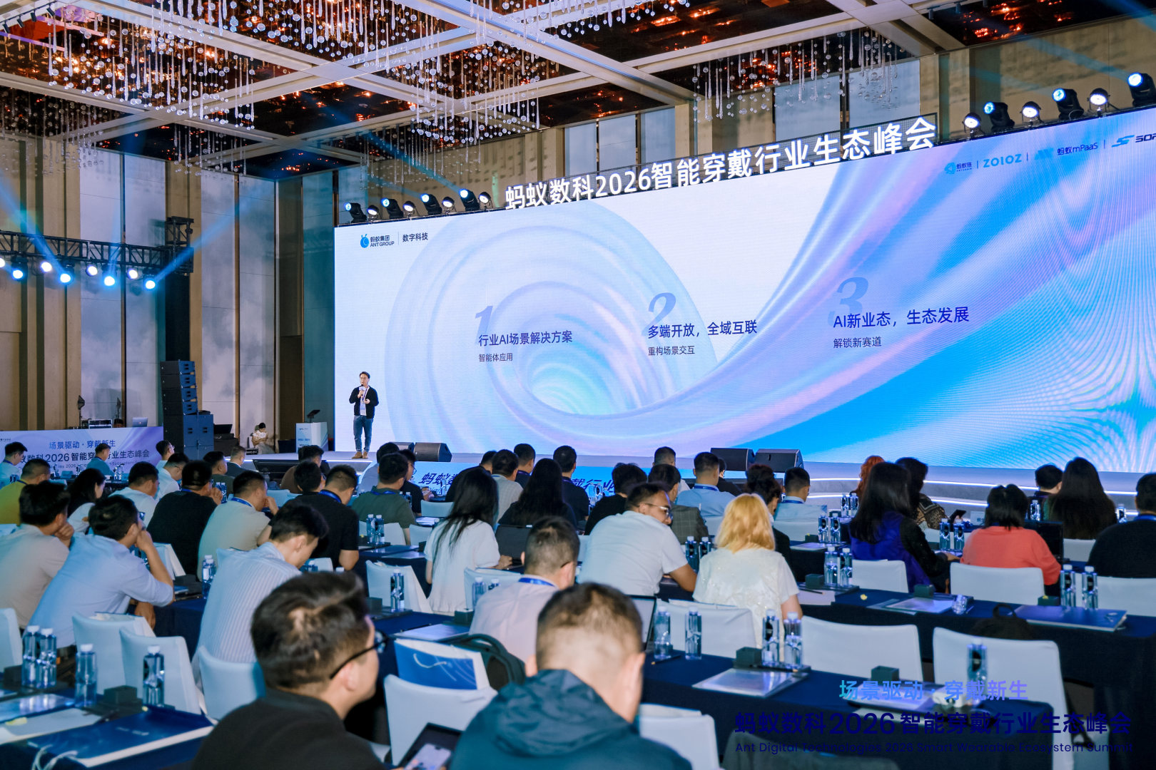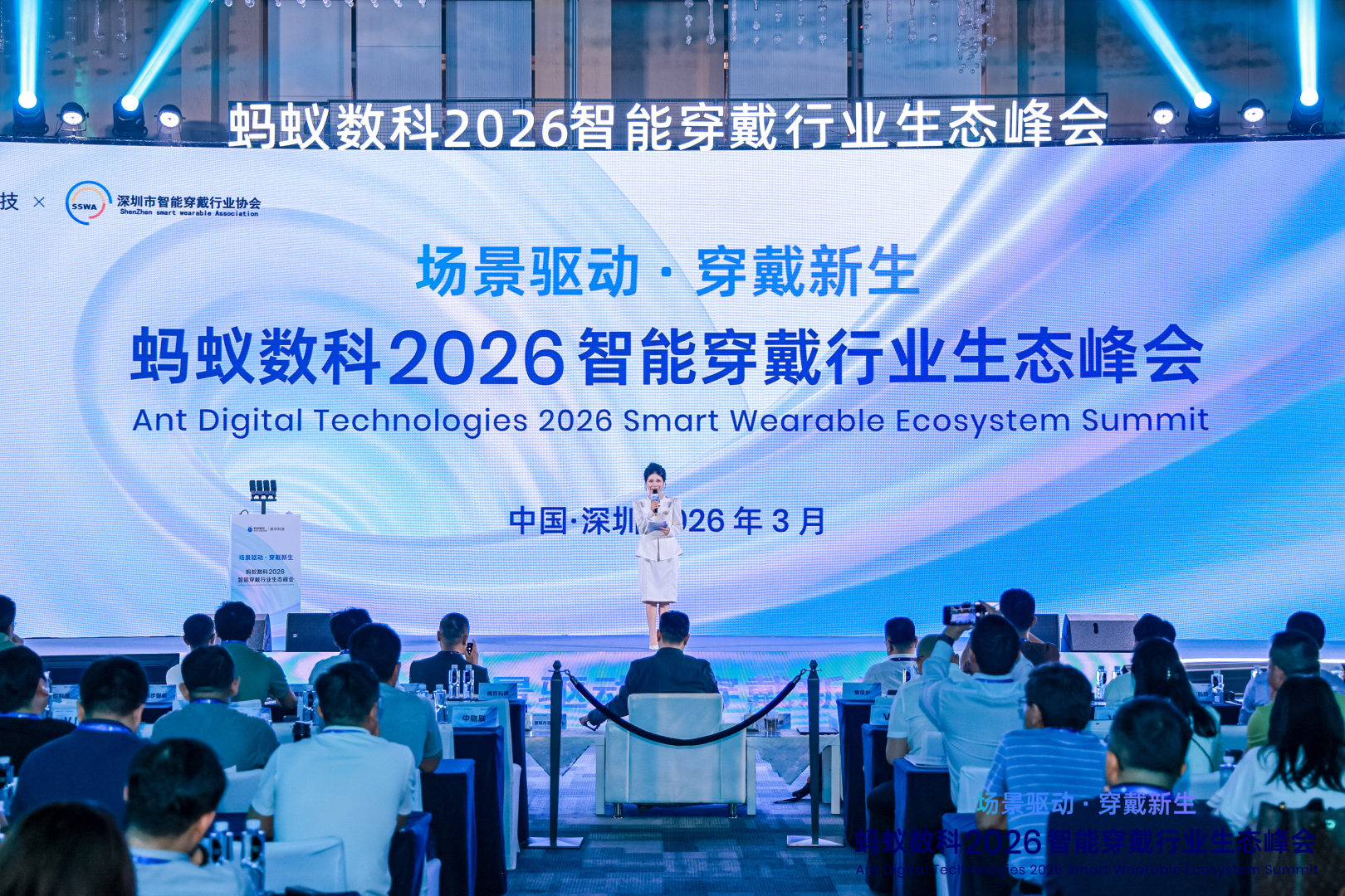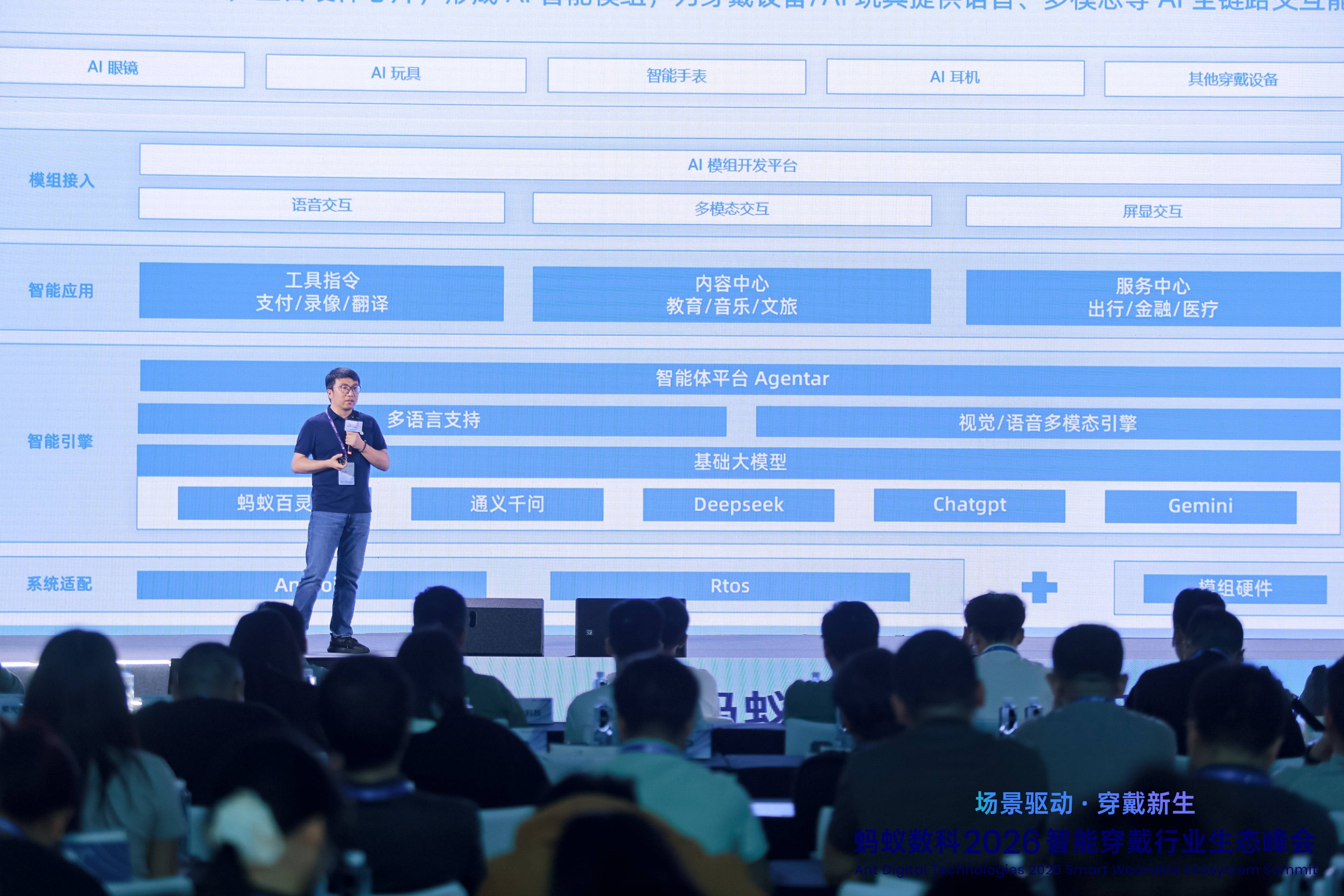 3 月 26 日下午,由蚂蚁数科主办的“场景驱动·穿戴新生—2026智能穿戴行业生态峰会”在深圳南山区康莱德酒店圆满召开。本次峰会汇聚了行业专家、企业代表及生态伙伴,共同探讨智能穿戴产业的技术创新与生态融合路径。