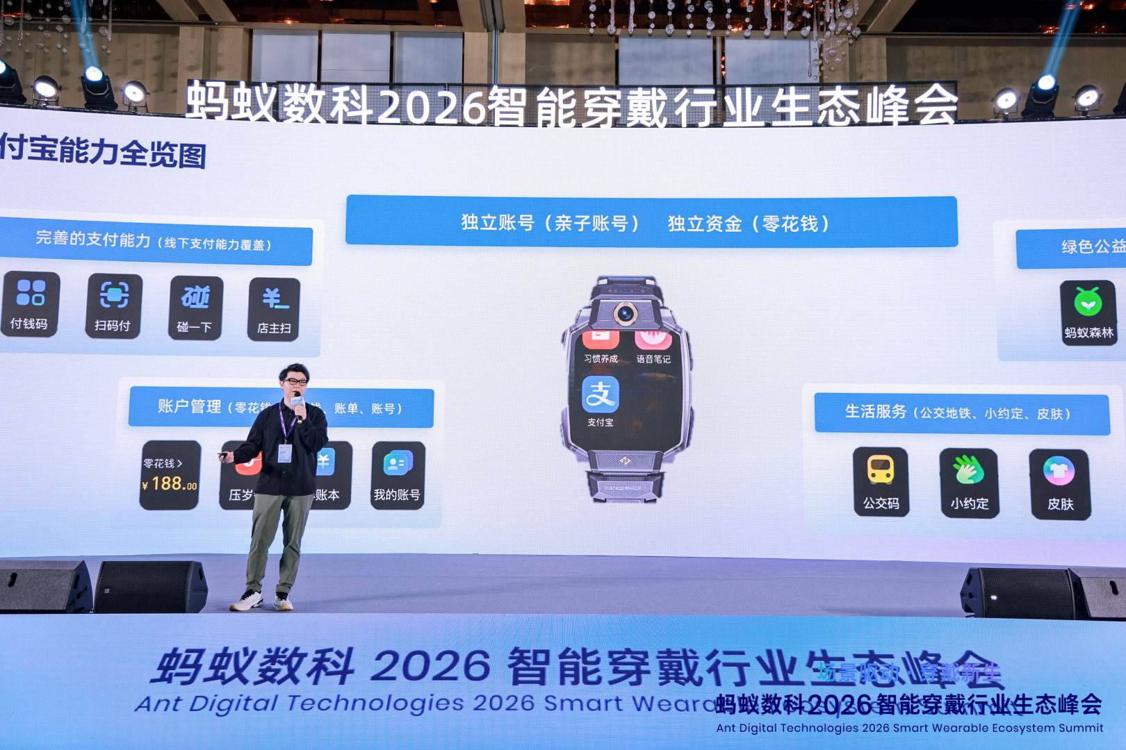 接着,蚂蚁数科 IOT 生态业务部总监丁磊以“连接无限·生态共赢”为题,全面解读了蚂蚁数科IOT生态业务全景,展示了其在智能穿戴领域的系统化布局与生态合作成果。